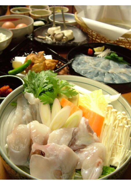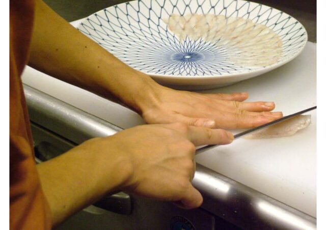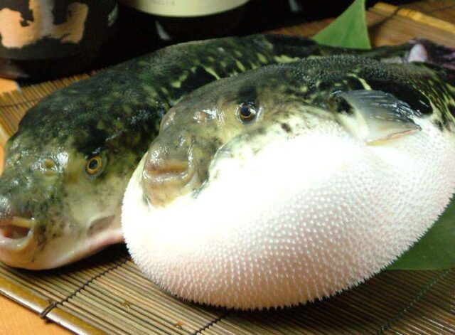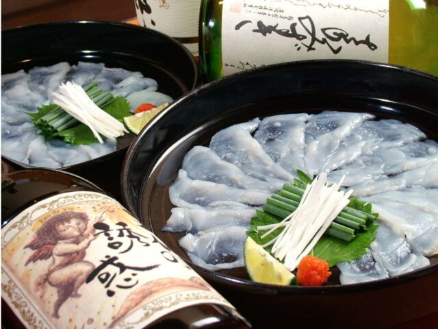 一般的にはとらふぐの刺身は薄切りにしてポン酢で食す